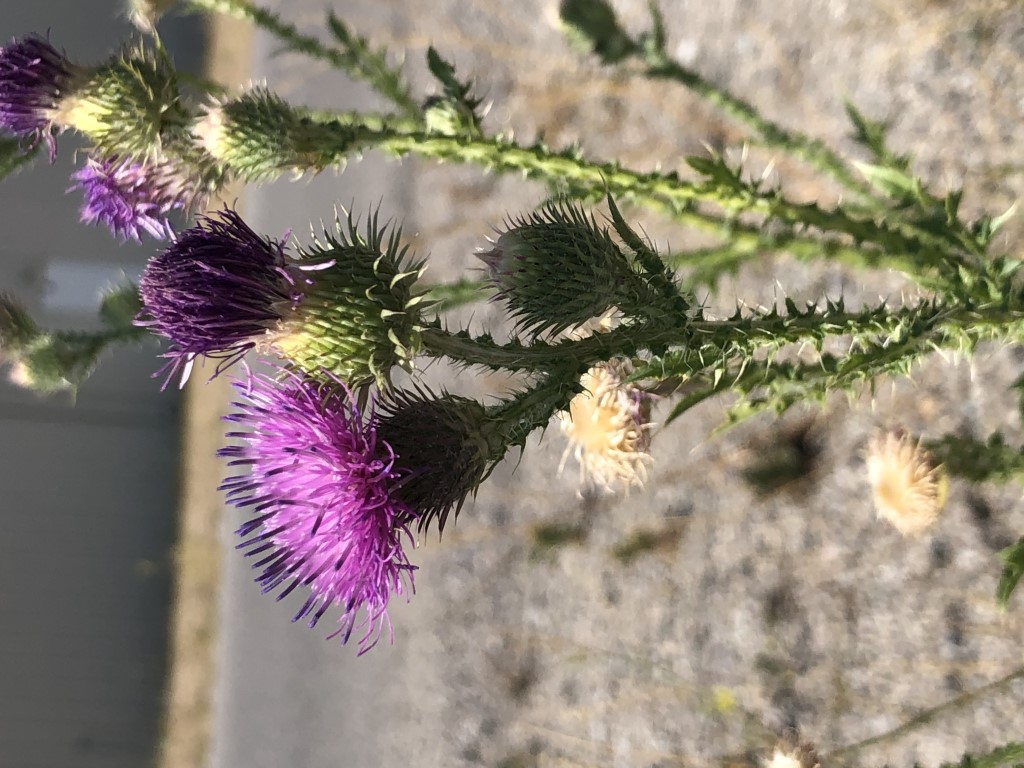 Plumeless thistle flowers from early summer to fall. Flowers reach up to 1.5 inches across, formed at the tips of stems, and may be solitary or in clusters of 2 to 3. Florets may be pink to deep purple and form a dense disk enclosed in a bulb of spiny bracts. Seeds are oblong achenes (about 5mm long and 1mm diameter) that are smooth and hairless.